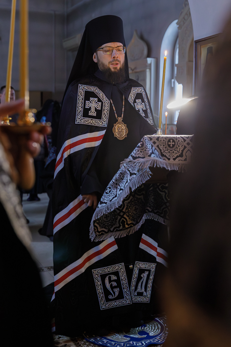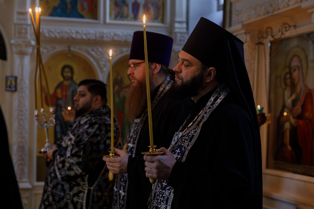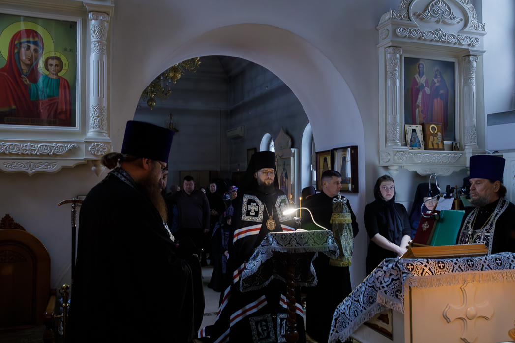 Его Преосвященству сослужили: благочинный Монастырского церковного округа игумен Илия (Ждамиров) и клирики Спасского монастыря.