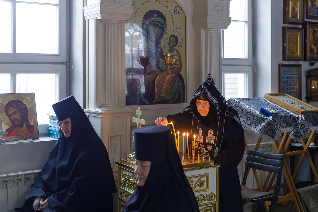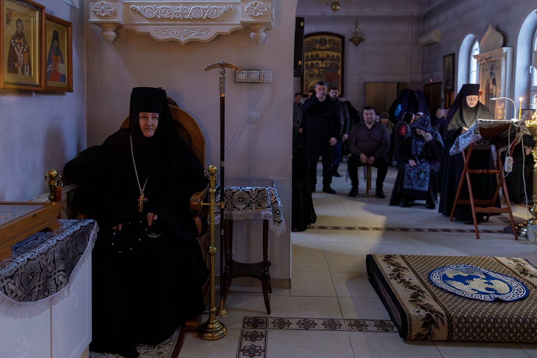 За богослужением молилась игумения Елена (Золотухина) с сестрами обители.
