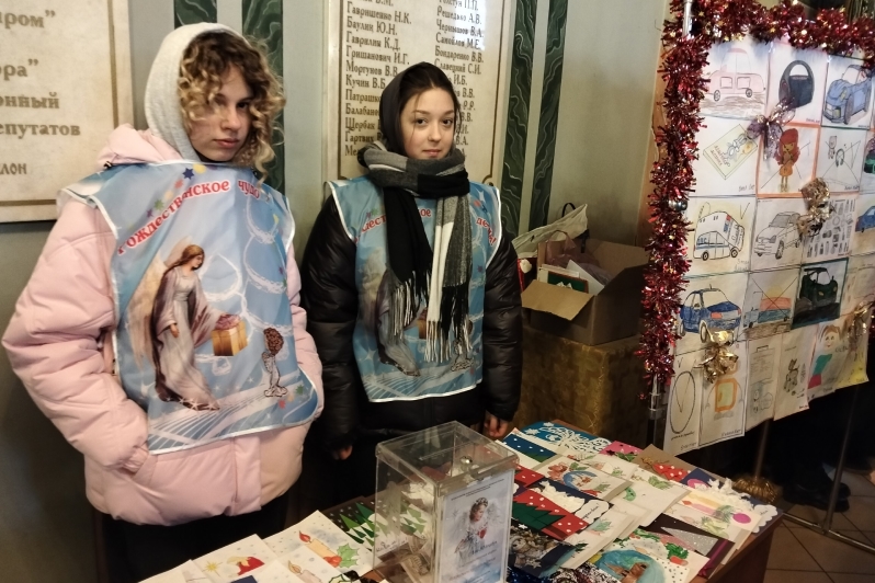 24-25 декабря в рамках мероприятий в Свято-Ильинском кафедральном соборе города Россошь Россошанского благочиния учащиеся СОШ № 3 и представители молодежного актива кафедрального собора раздавали рождественские открытки прихожанам за посильное пожертвование.