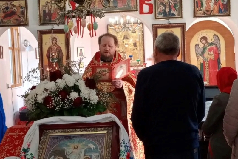 По завершении литургии батюшка огласил Пасхальное послание святейшего Патриарха Московского и всея Руси Кирилла.