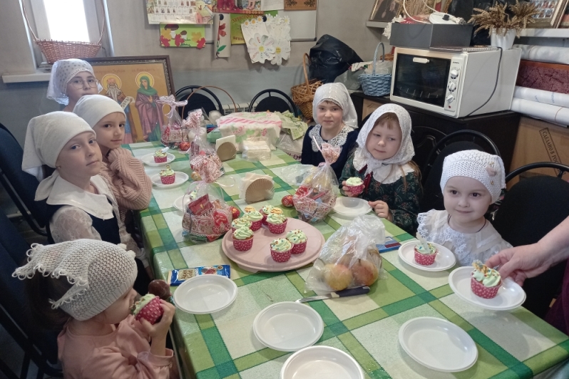 Завершился праздник дружеским чаепитием. Матушка Елена позаботилась и об угощении — к чаю подали ароматные пирожные, которые она приготовила специально для этого дня. Дети с удовольствием угощались сладостями, общались друг с другом и делились впечатлениями.