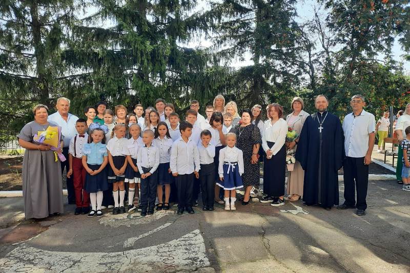 Торжественная линейка в МКОУ «Осиковская СОШ» 1 сентября ознаменовалась важным событием для учащихся и педагогического коллектива. В этот знаменательный день школу посетил настоятель храма в честь Покрова Пресвятой Богородицы села Осиковка Кантемировского района иерей Алексий Жиляев.