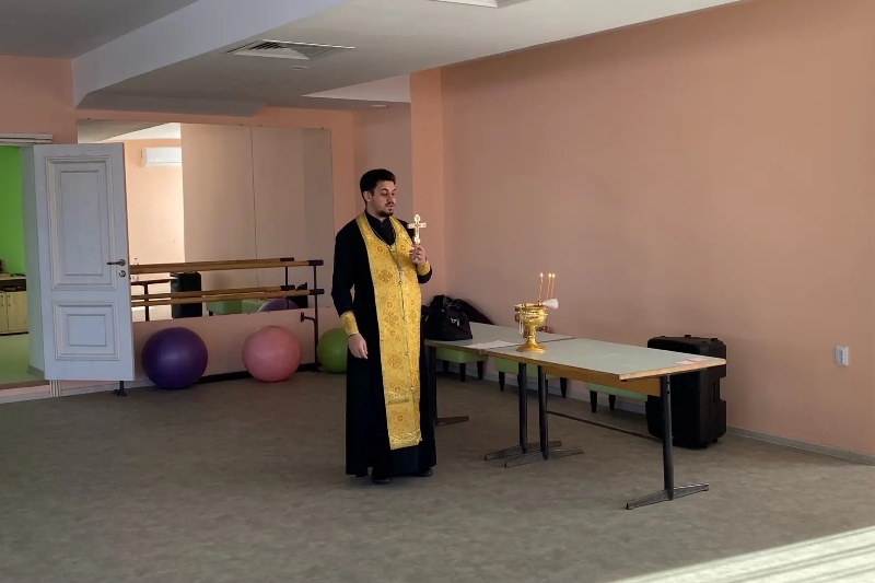 После общей молитвы был совершен чин освящения, во время которого стены учреждения были окроплены святой водой, дабы благодать Божия осеняла все творческие начинания, помыслы и труды тех, кто будет в нем трудиться и отдыхать.