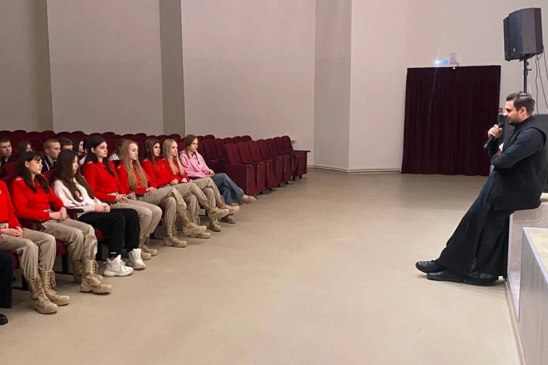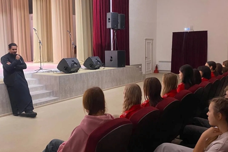 Иерей Андрей приводил живые примеры из личного опыта, полученного во время миссионерских и паломнических поездок. Он поделился с ребятами историями встреч с представителями различных, в том числе малочисленных, народов, рассказав об их уникальном культурном коде, обычаях и мировоззрении. Эти искренние рассказы позволили слушателям по-новому взглянуть на понятие «многонациональный народ России», ощутив его не как абстрактную формулу, а как богатую палитру живых человеческих судеб.