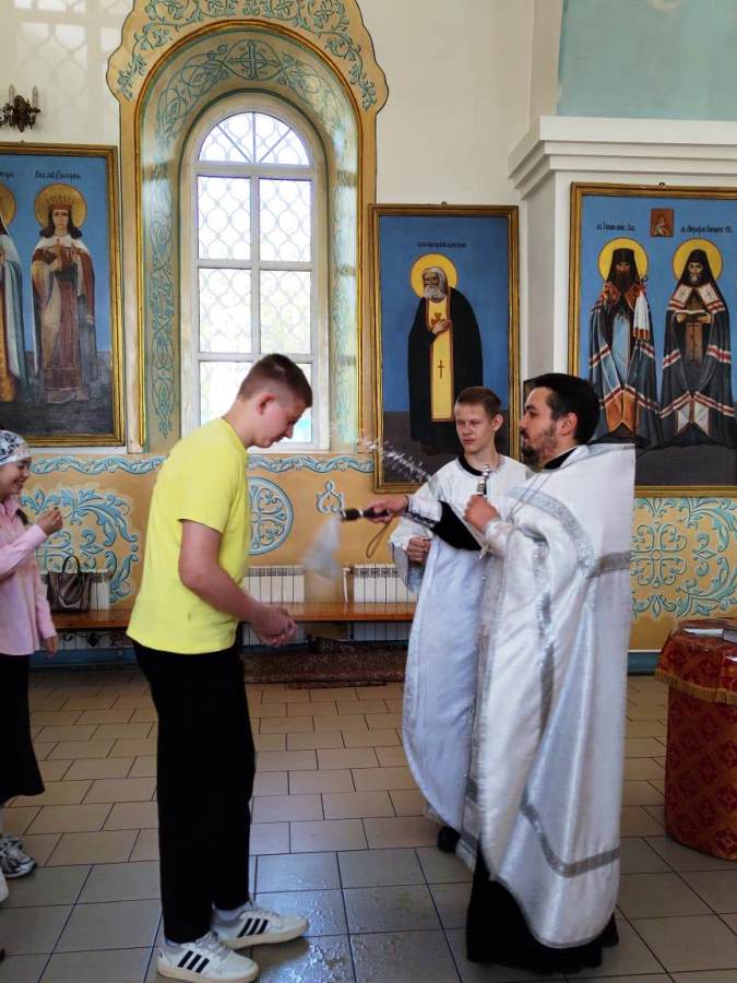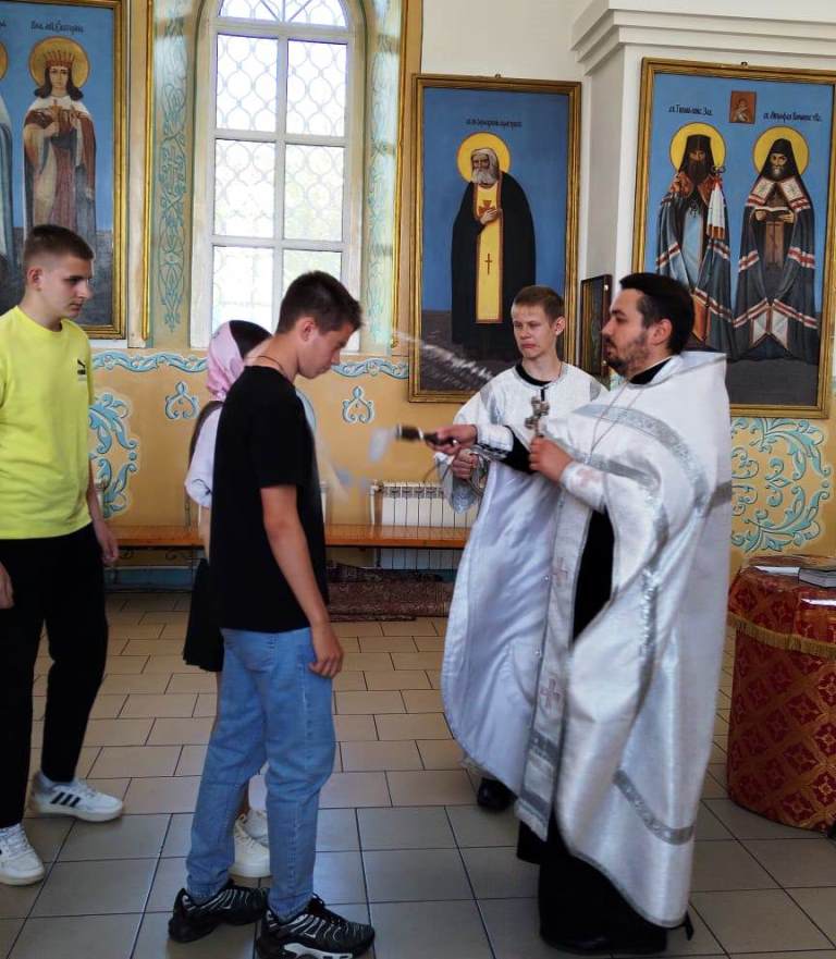 После совершения службы батюшки окропили присутствующих святой водой и обратились к ним с напутственным словом и пожеланиями благополучной сдачи экзаменов.