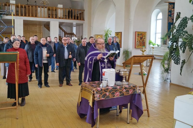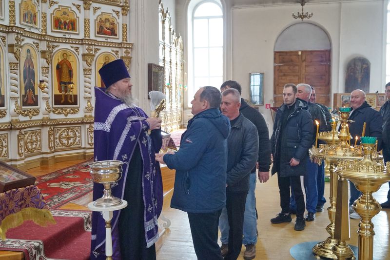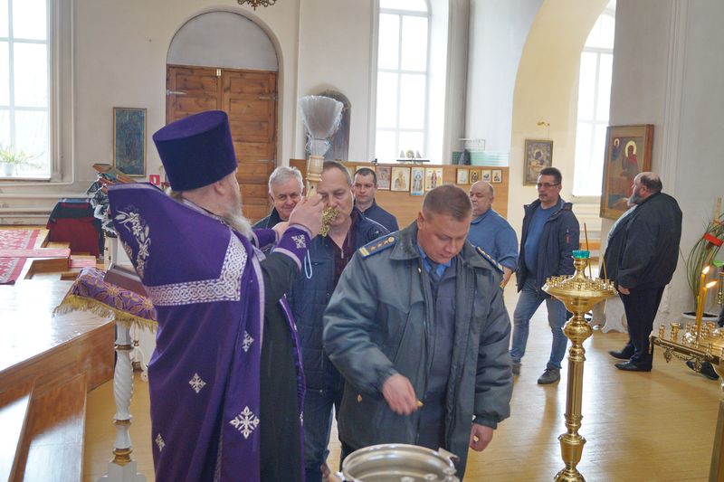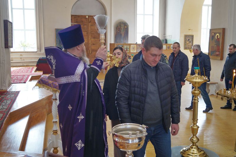 По завершении богослужения настоятель окропил святой водой всех молящихся. Каждый получил из рук настоятеля благословение.