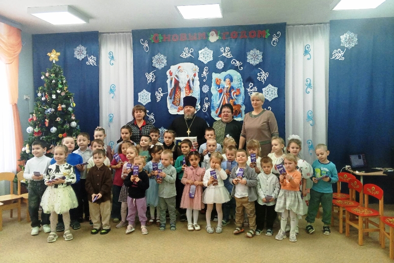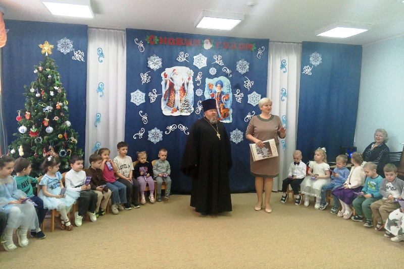22 января настоятель храма святителя Митрофана, первого епископа Воронежского, села Верхний Мамон Богучарского благочиния, протоиерей Сергий Чибисов, вместе со своей матушкой Надеждой, посетил МКДОУ «Верхнемамонский детский сад № 2».