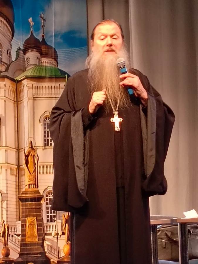 Затем, помолившись у частицы Ризы Пресвятой Богородицы на молебне, паломники отправились на экскурсию по храмам Воронежа. Посетили Покровский и Благовещенский соборы, Алексеево - Акатов монастырь, Успенский храм на Адмиралтейской площади, Митрофановский храм на источнике. С интересом слушали об истории Воронежа, об образовании митрополии, о митрополитах Митрофане Воронежском, Тихоне Задонском, Петре Звереве, о жизни матушки Феоктисты. В Митрофоновском храме набрали водички в источнике. Посещая святые места, прикладывались к святыням, ставили свечи и подавали требы. После экскурсии возвратились на форум для встречи с протоиереем Артемием Владимировым. Два часа беседы пролетели незаметно. Говорил отец Артемий просто и доступно о военных, о воспитании детей, о том, что решение наших проблем в проявлении любви, и Церковь в этом нам надёжный помощник. Батюшка читал стихи, дарил свои книги. Встреча с отцом Артемием затронула самые сокровенные струны души, подарила умиротворение и радость.