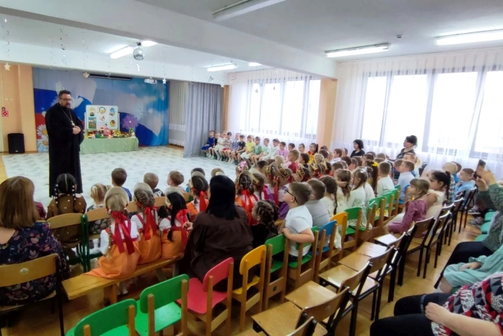 По завершении праздничных представлений отец Дионисий обратился к собравшимся с теплыми словами поздравления. Он поздравил детей, воспитателей и родителей с праздником Светлого Христова Воскресения, поблагодарил юных артистов за прекрасные выступления и отметил старания педагогов, подготовивших утренники.