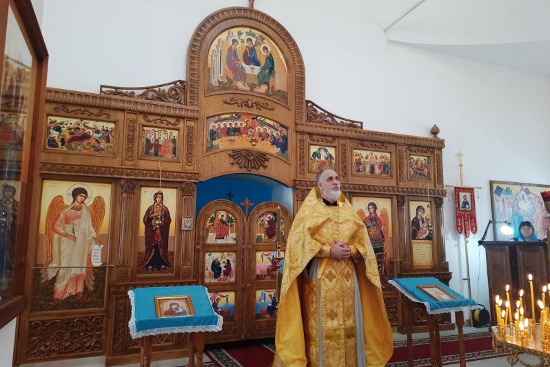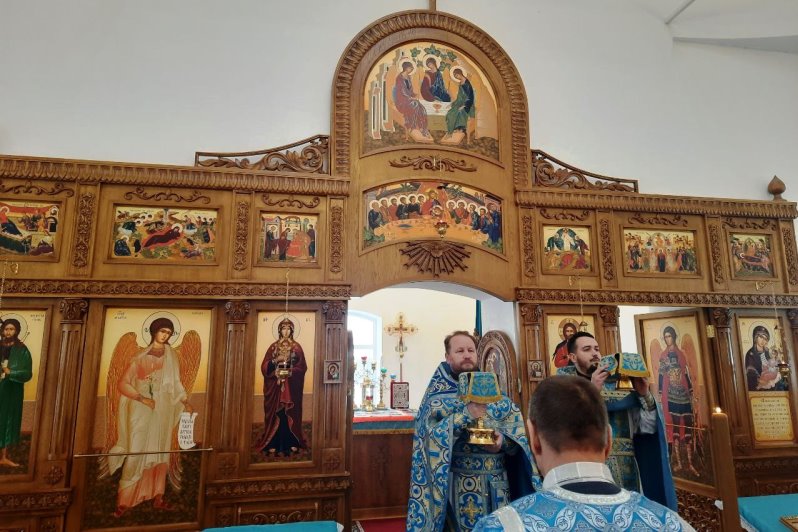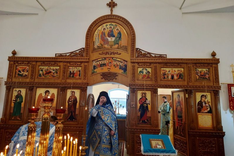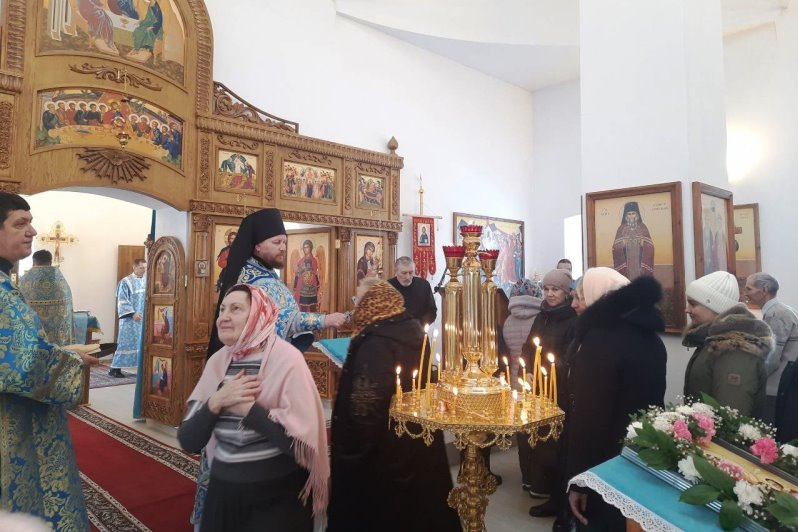 Затем отец Тихон обратился к молящимся с назидательным словом. Батюшка сердечно поблагодарил всех за молитвенное участие, особо подчеркнув, что, несмотря на отдалённость храма, люди нашли возможность прийти, приехать и соборно помолиться в этот значимый день. Также выразил сердечную благодарность Виктору Васильевичу Жуковскому и его супруге Ольге Ивановне за неоценимый вклад в жизнь прихода. Виктор Васильевич является строителем храма и продолжает усердно трудиться над его благоукрашением. Благочинный поздравил прихожан с престольным праздником, пожелал всем душевного утешения, заступничества Пресвятой Богородицы, крепости духовных и телесных сил.