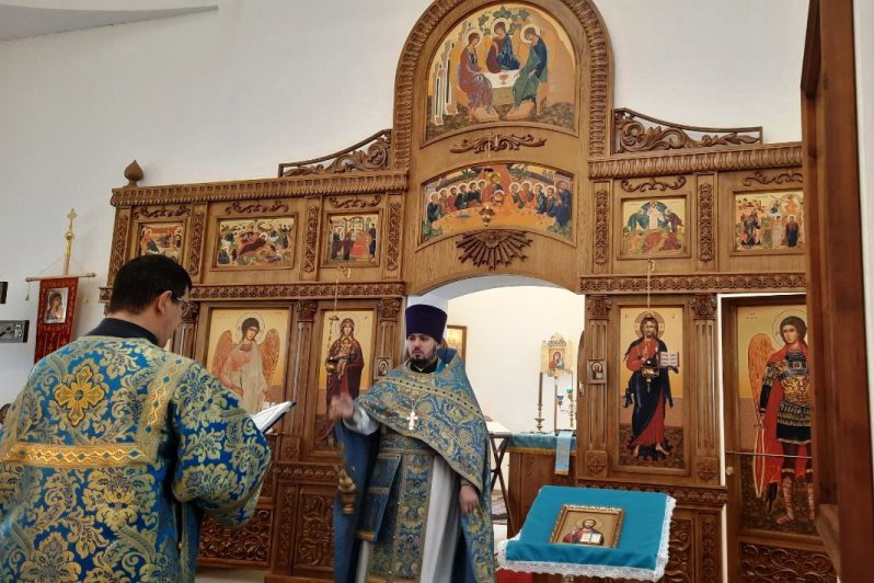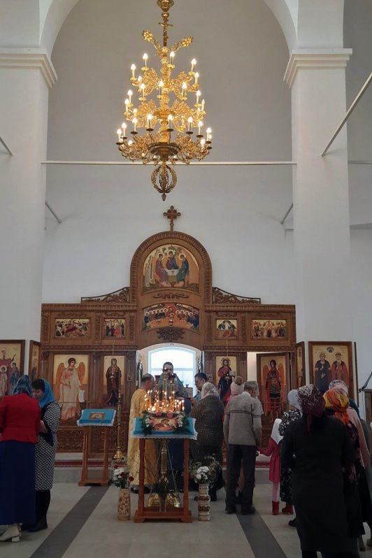 После литургии духовенство и миряне прошли крестным ходом вокруг храма. Священнослужители поочерёдно окропляли собравшихся святой водой и поздравляли прихожан с престольным праздником.