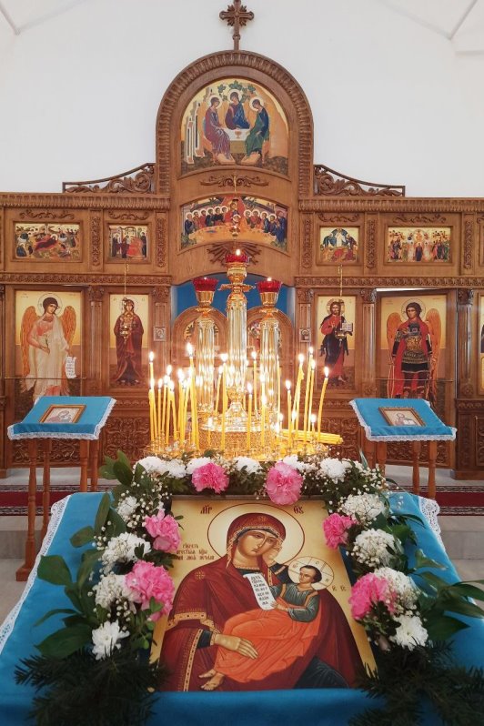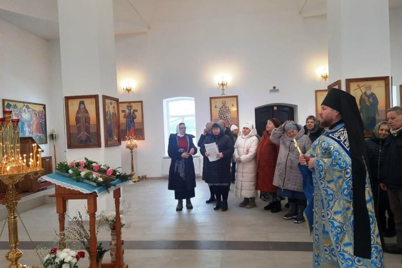 По завершении крестного хода благочинный вознес молитву перед образом иконы Божией Матери — главной святыней прихода, к которой верующие обращаются за утешением и заступничеством.