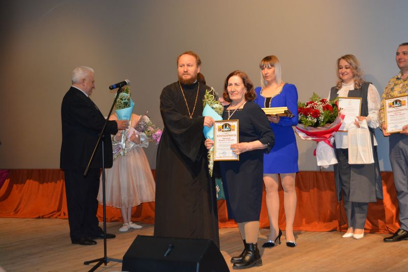 Благочинный в приветственном слове поздравил работников культуры с праздником и преподнес руководителю Управления культуры района Дорохиной Юлии Владимировне благодарственное письмо от епископа Россошанского и Острогожского Дионисия за благотворное содействие и активное участие в культурных проектах Россошанской епархии, направленных на возрождение и развитие духовных и культурно-нравственных ценностей. Также отец Тихон вручил благодарности за плодотворное сотрудничество работникам культуры и преподавателям Богучарской детской школы искусств им. Кищенко А.М.