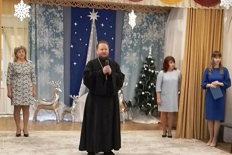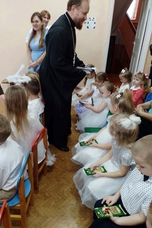 В свою очередь благочинный поблагодарил детей и воспитателей за прекрасные номера и красивые костюмы, поздравлял всех присутствующих с праздником Рождества Христова, пожелал детям дружить и поддерживать друг друга в трудную минуту, чтобы любили родных и помнили своих первых воспитателей.
