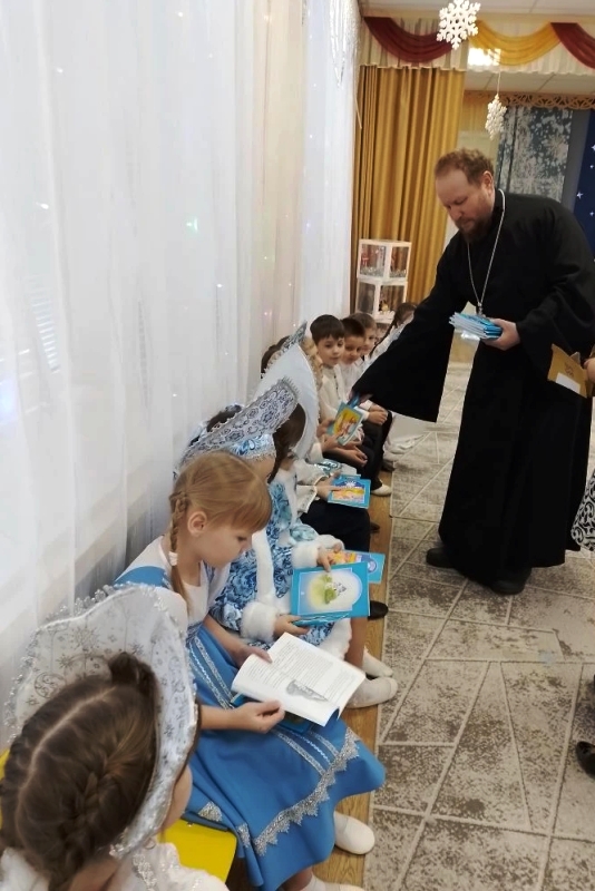 По завершении праздничных представлений иеромонах Тихон подарил ребятам сладкие подарки и красочные православные книжки.