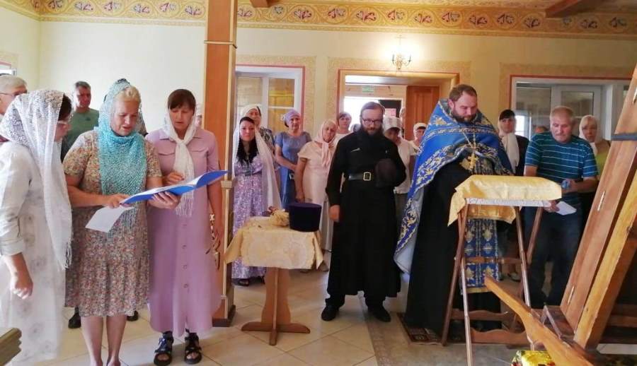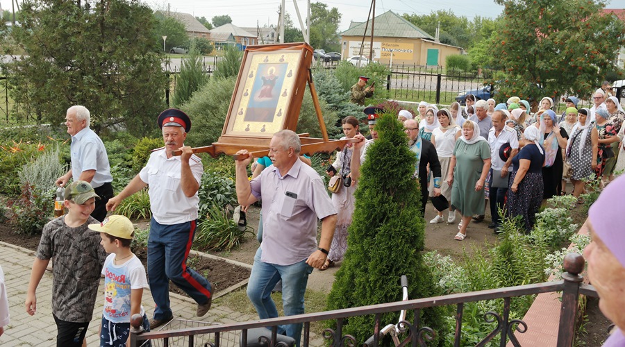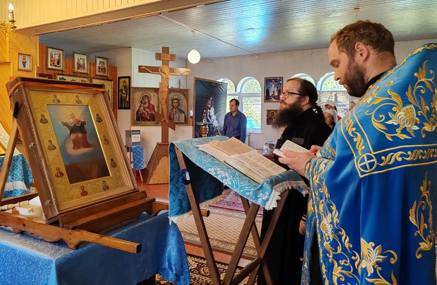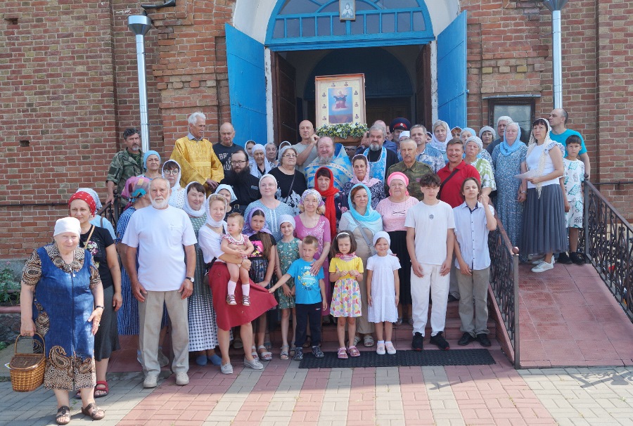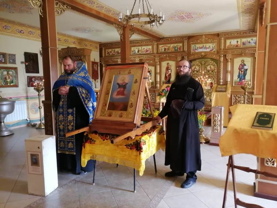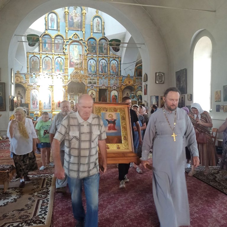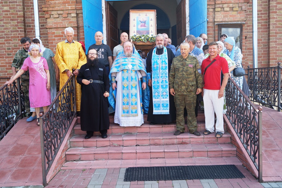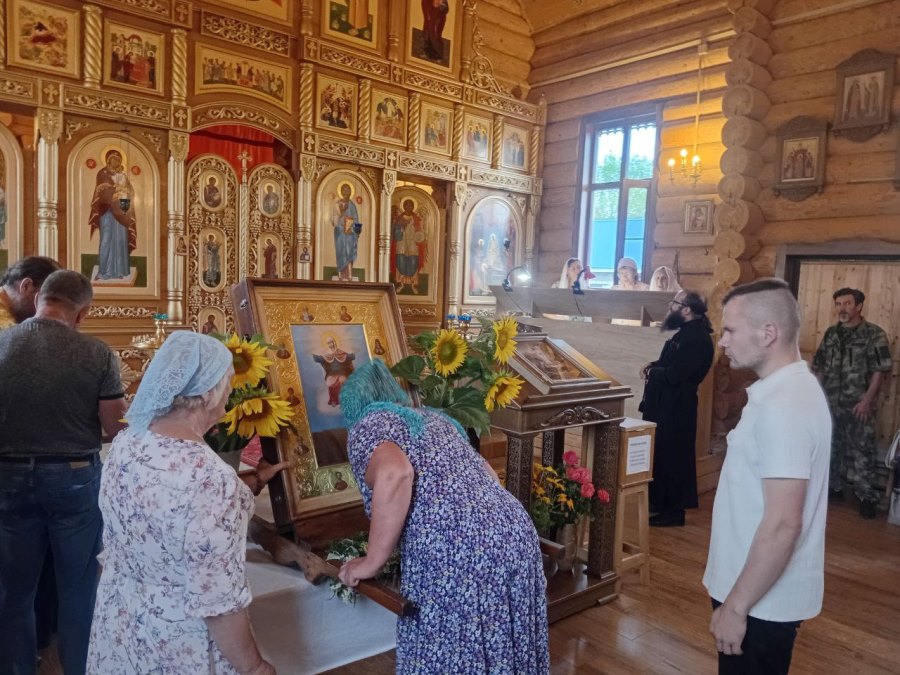 По завершении икона была принесена в храм Успения Пресвятой Богородицы. Настоятель отец Василий совершил молебен и прихожане с благоговением приложились к святыне.