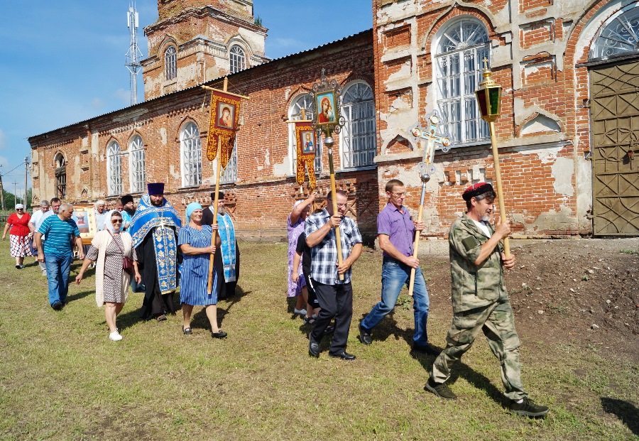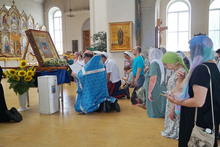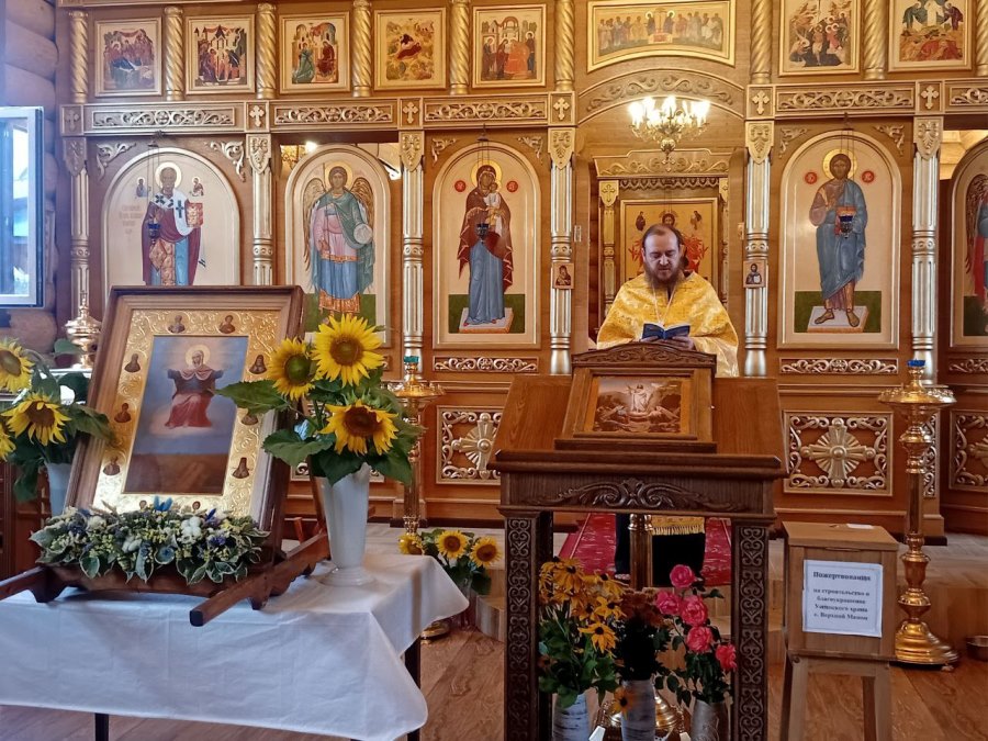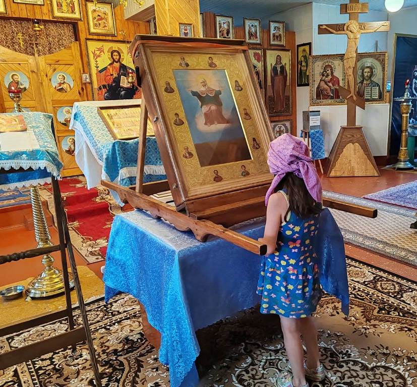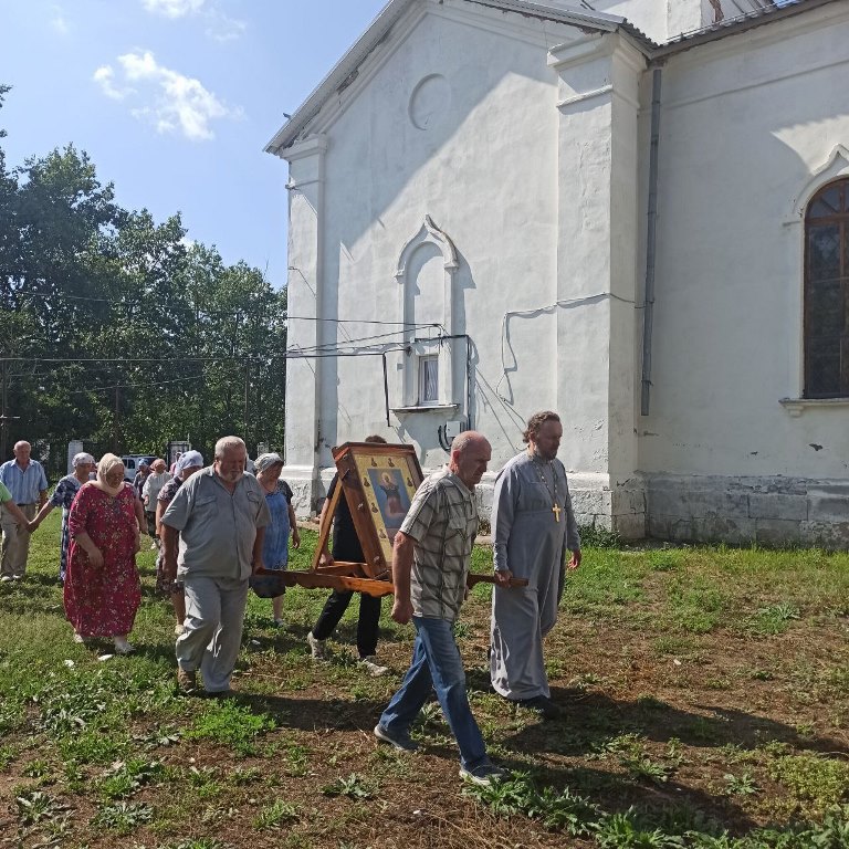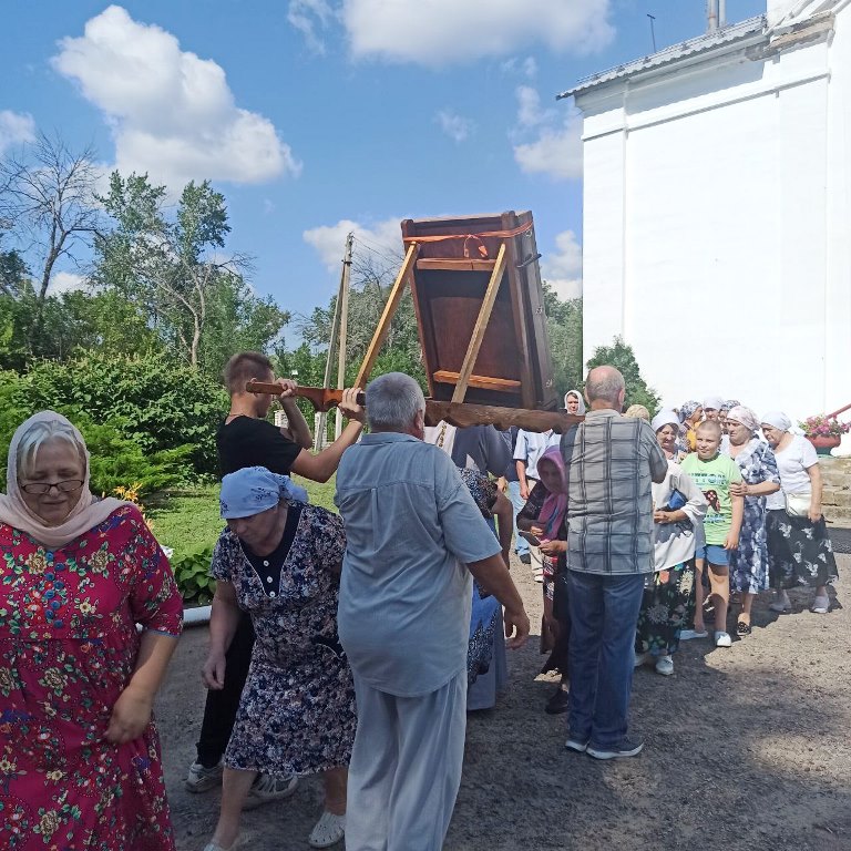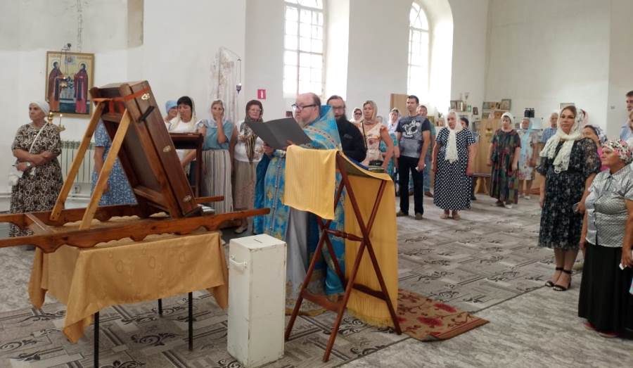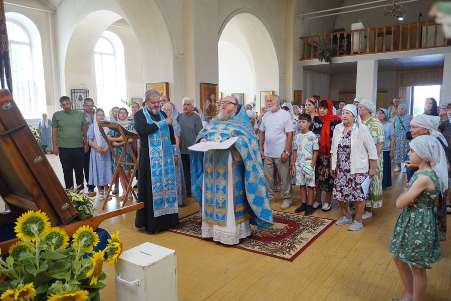 По завершении икона была принесена в храм Успения Пресвятой Богородицы. Настоятель отец Василий совершил молебен и прихожане с благоговением приложились к святыне.
