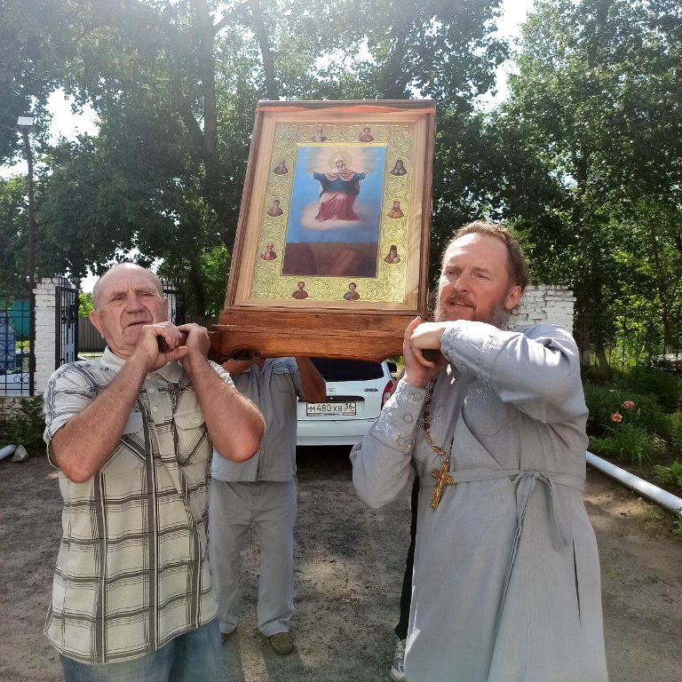 Далее отец Виталий совершил молебен с акафистом в Нижнемамонском храме Иоанна Богослова. Все молящиеся были окроплены святой водой, после чего с молебным пением обошли с иконой вокруг храма.