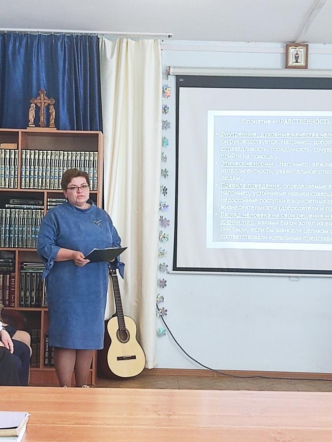 С докладом на тему «Мы с ними были на войне… Использование средств художественной выразительности для формирования духовно-нравственных категорий воспитанников Воскресной школы» выступила преподаватель Духовно-просветительского центра во имя свт.Тихона Задонского Ирина Викторовна Чукина.