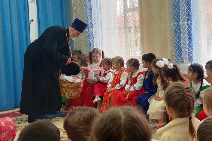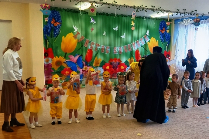 В завершение мероприятия отец Евгений обратился к детям и педагогам с теплыми словами благодарности за душевные выступления. Батюшка отметил талант и старания юных артистов, а также выразил признательность воспитателям за кропотливую работу по духовно‑нравственному воспитанию дошкольников.