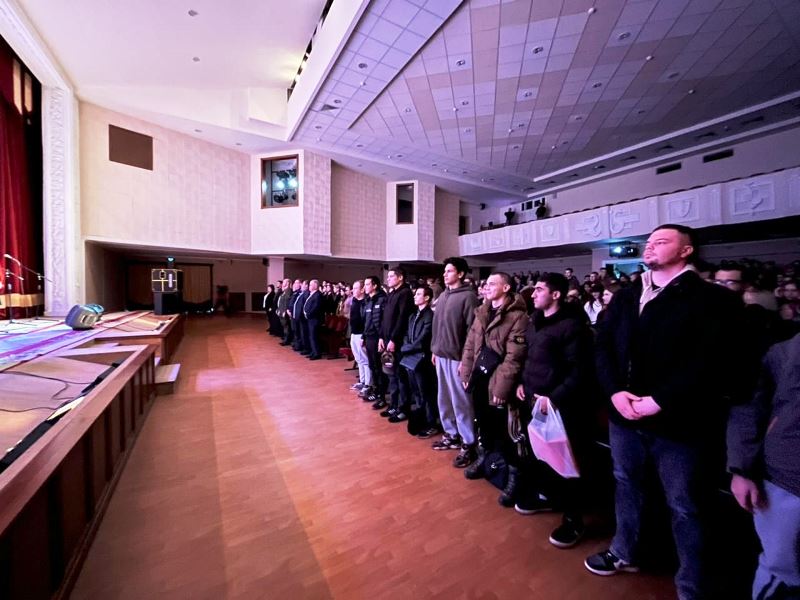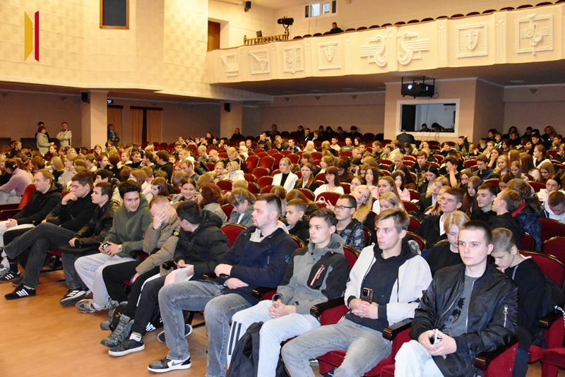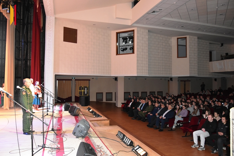 В зале собрались будущие защитники Родины, которым предстоит в ближайшие три месяца отправиться выполнять воинскую обязанность, а также старшеклассники и студенты Кантемировского филиала колледжа допризывного возраста.