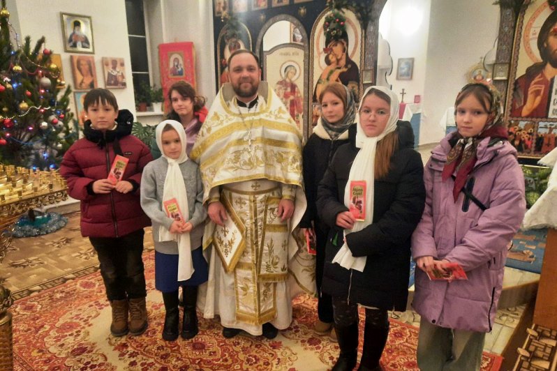 С 7 по 9 января иерей Алексий Жиляев поздравлял детей на приходах Покровского храма села Осиковка, Успенского храма села Зайцевка, Никольского храма села Талы, Успенского храма села Новобелая Кантемировского района.