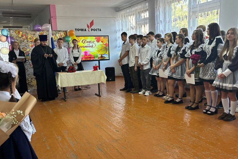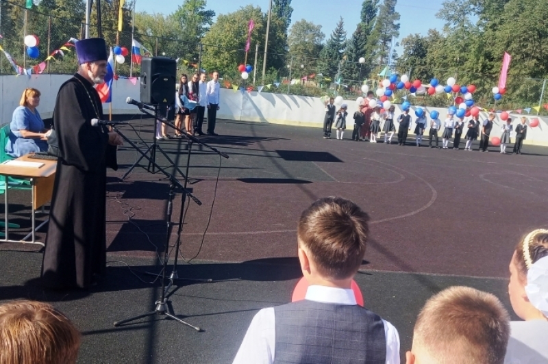 Затем священник посетил торжественную линейку в МКОУ «Подколодновская СОШ».