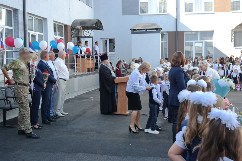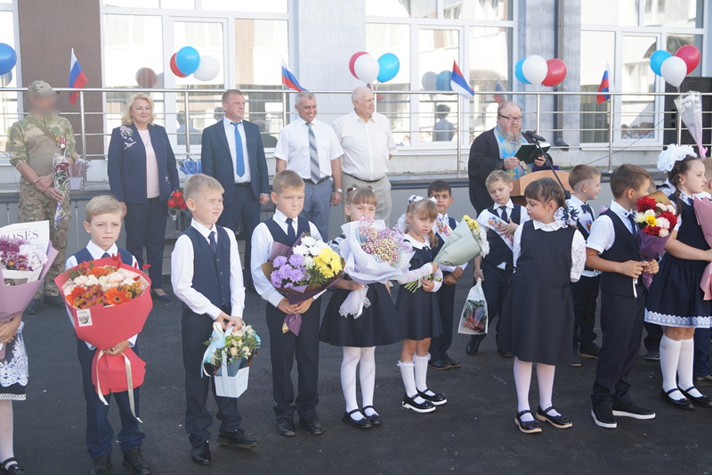 С началом учебного года присутствующих поздравили: директор школы Ткачёв Игорь Викторович; глава администрации Верхнемамонского муниципального района Михайлусов Олег Алексеевич; заслуженный учитель России Василий Иванович Дудкин; депутат Воронежской областной Думы Ипполитова Людмила Ивановна; участник специальной военной операции Олейников Сергей Владимирович.