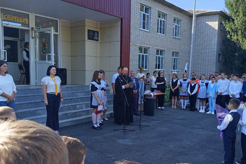 Священник огласил обращение епископа Россошанского и Острогожского Дионисия по случаю «Дня знаний», поздравил ребят и преподавателей с праздником, подчеркнул, что этот праздник открывает период особого труда, но труд этот приносит радость. Ребятам пожелал усидчивости и терпения в нелегком процессе получения знаний.