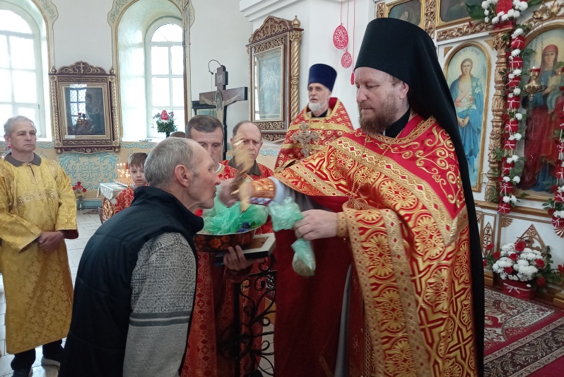 Многие прихожане пришли в этот день в храм, чтобы поклониться иконе Божией Матери «Спорительница хлебов», которую накануне крестным ходом доставили из Галиевского храма, носящего ее имя. Прихожане приветствовали друг друга традиционными словами «Христос воскресе!» — «Воистину воскресе!».