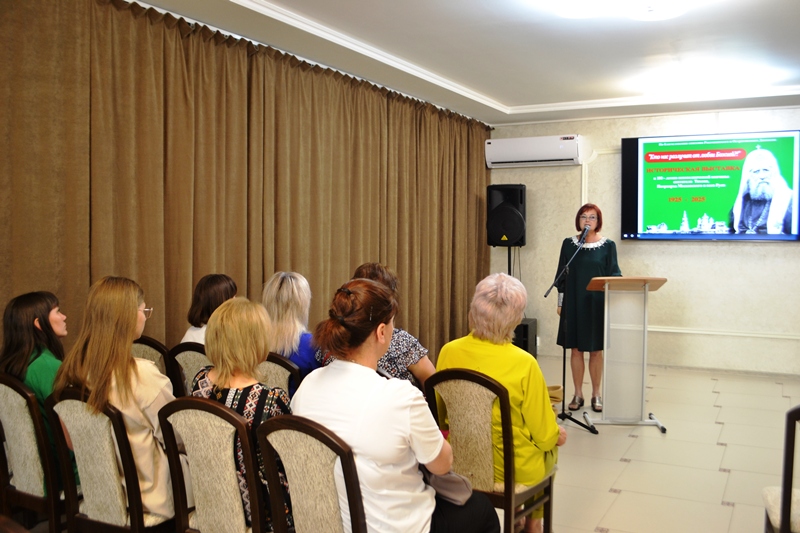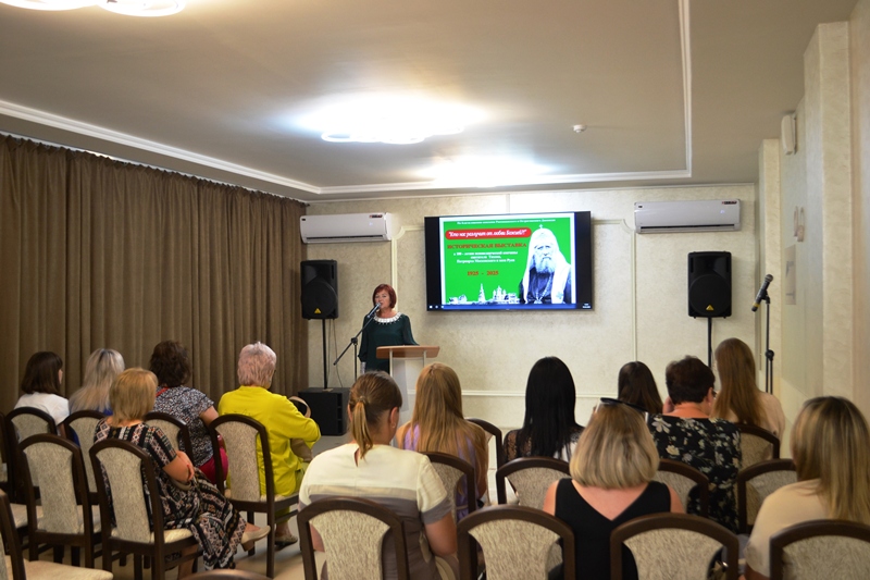 В ходе проведения выставки особое внимание было уделено рассказу о житии и подвиге святителя Тихона, с которым присутствующих неоднократно познакомила помощник благочинного Богучарского церковного округа Алла Александровна Слатина.