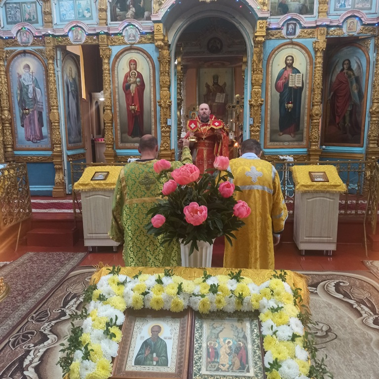Перед причастием о. Димитрий обратился с проповедью к прихожанам, в которой рассказал о житии апостола Иоанна Богослова. По завершении литургии духовенство и прихожане прошли крестным ходом вокруг храма. После чего благочинный вознес молитву перед образом иконы святого. Затем о. Тихон поздравил молящихся с праздником и обратился к присутствующим с пастырским наставлением.
