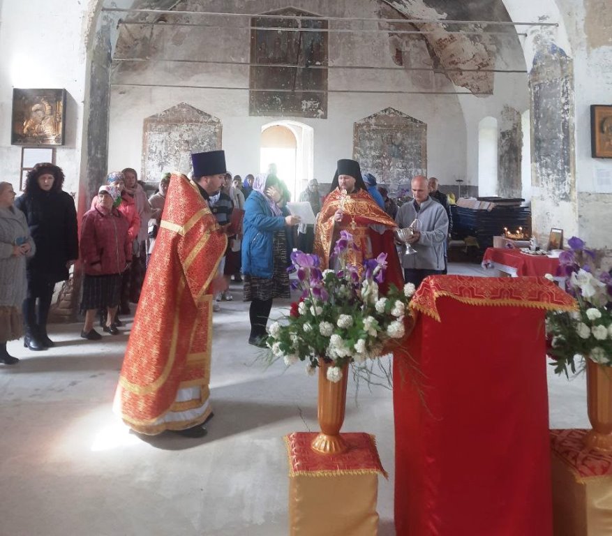 Но дважды в год в селе отмечается престольный праздник, о котором старшее поколение помнит и чтит. В этот раз праздник выпал на светлые Пасхальные дни. Почти сто лет эти стены не слышали Христос Воскресе! Воистину Воскресе! Помолились о здоровье пришедших и «живущих в веси сей», батюшка поздравил с престольным праздником и Пасхой, окропил молящихся святой водой, рассказал о житии апостола Любви Иоанна Богослова.