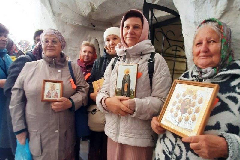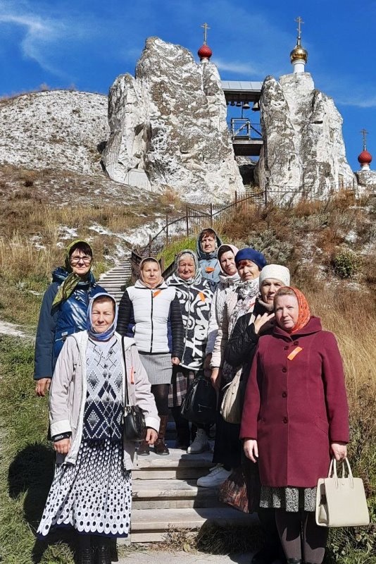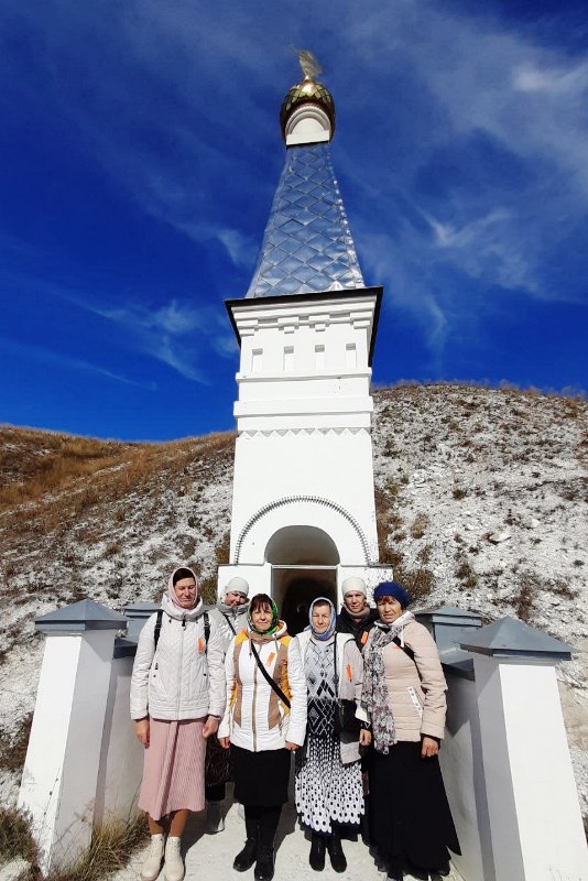 Участники поездки помолились на Божественной литургии, исповедовались и причастились Святых Христовых Таин. Благоговейно приклонились чудотворным иконам. По завершении литургии прошли крестным ходом к Поклонному Кресту на вершину горы, которую называют Костомаровская Голгофа. У Креста поучаствовали в молебне святым мученицам. Посетили подземный храм Серафима Саровского и кельи монахов, которые находятся в меловых стенах монастыря. Побывали на экскурсии в наземном храме иконы Божией Матери «Взыскание погибших».
