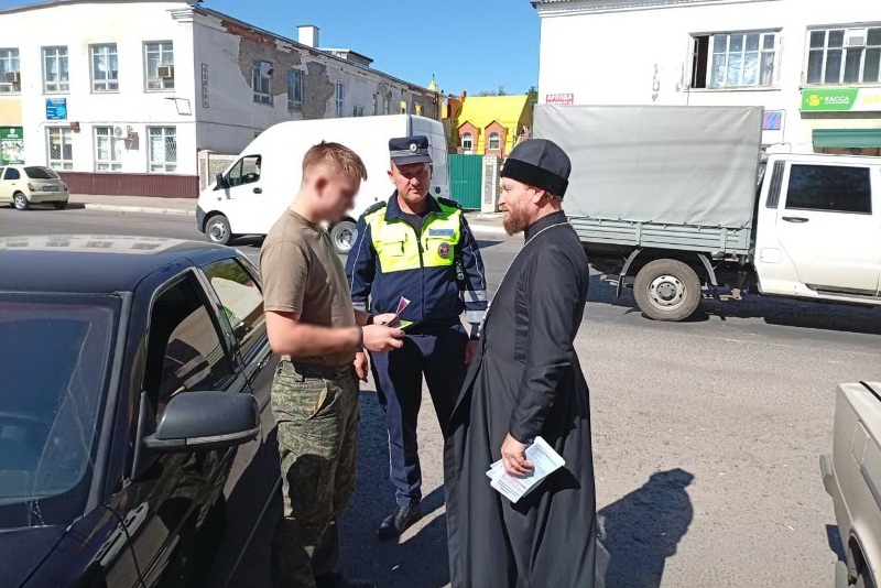 Далее, в рамках Дня трезвости, иеромонах Тихон и сотрудники ОГИБДД по Богучарскому району провели акцию «Трезвый водитель». Благочинный раздавал водителям буклеты, призывающие вести трезвый образ жизни. И проводил разъяснительную беседу, приуроченную ко Дню трезвости, напоминая о том, что необходимо особенно воздерживаться от употребления алкоголя за рулем автомобиля.