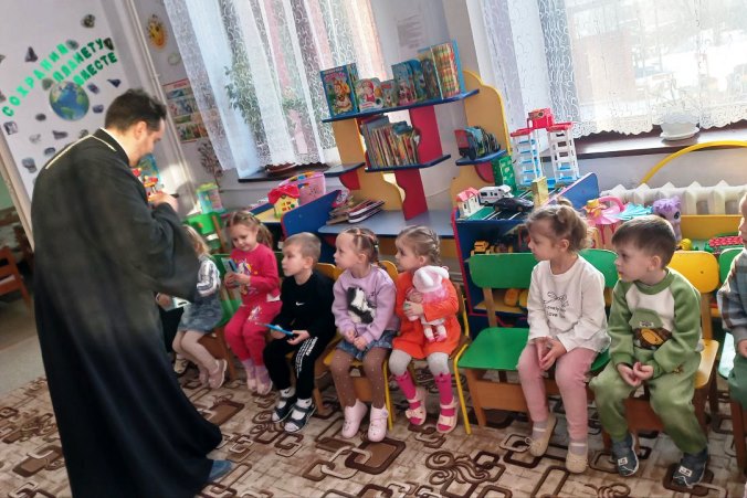 14 апреля клирик храма святого мученика Иоанна Воина города Богучар иерей Дионисий Киреев вместе с матушкой Ириной посетили детские сады «Сказка» и «Солнышко». Визи...