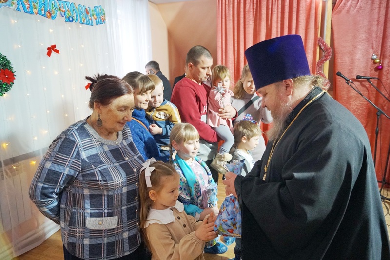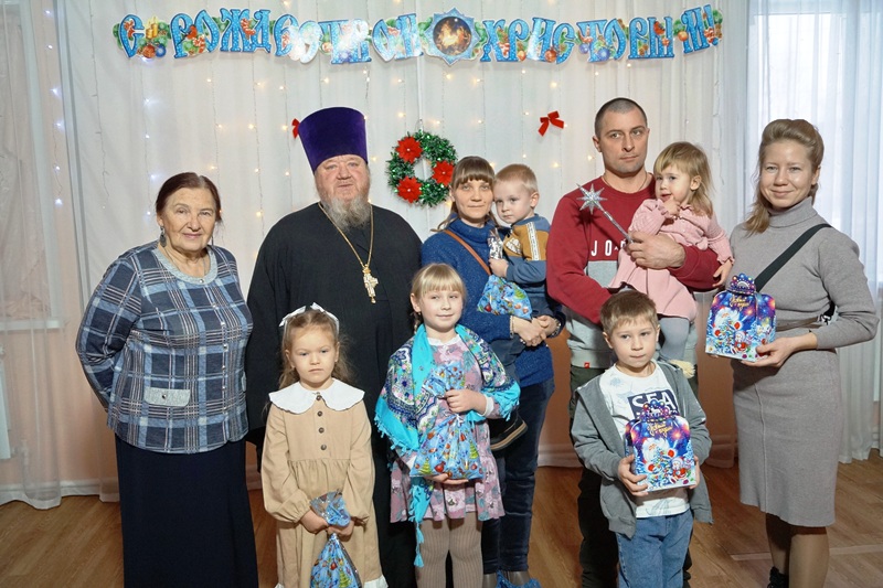 Далее отец Сергий вручил подарки воспитанникам воскресной школы, многодетным семьям и семьям участников специальной военной операции.
