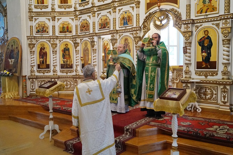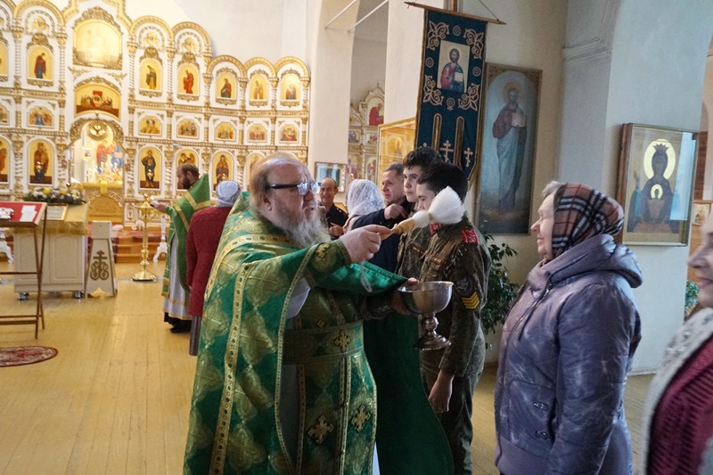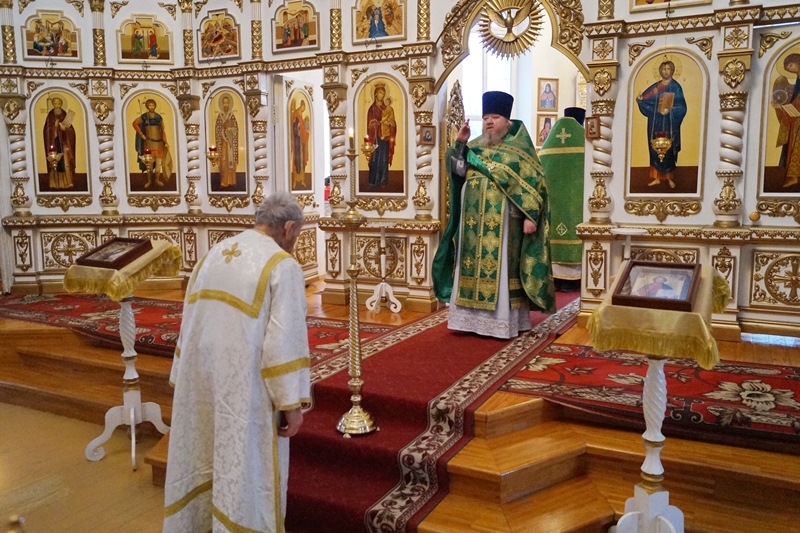В храме в честь Святой Живоначальной Троицы рабочем поселке Кантемировка соборное богослужение совершил настоятель храма протоиерей Михаил Шушеров в сослужении иерея Андрея Коровина, настоятеля храма святого благоверного князя Александра Невского села Митрофановка.