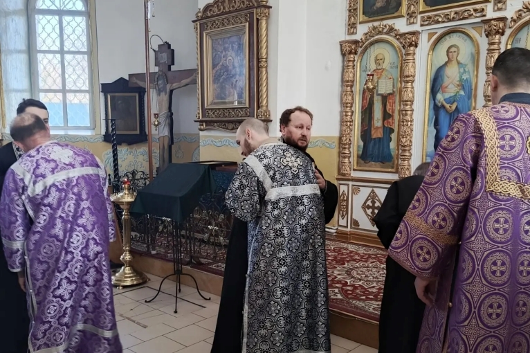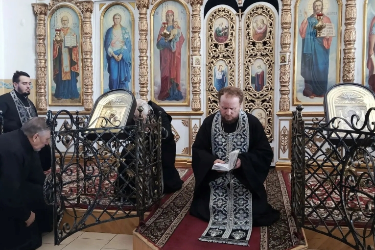 Божественную литургию и Вечерню с чином прощения в сослужении почетного настоятеля протоиерея Феодора Цокало и клирика храма иерея Димитрия Нога совершил благочинный Богучарского церковного округа, настоятель храма иеромонах Тихон (Жданов).
