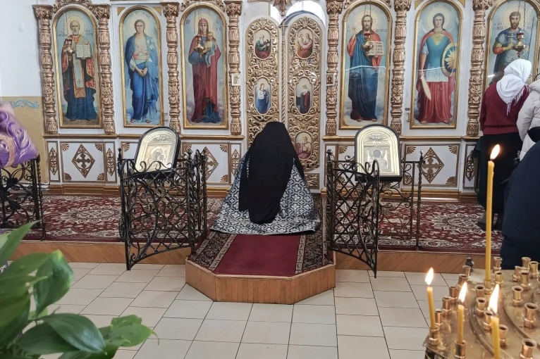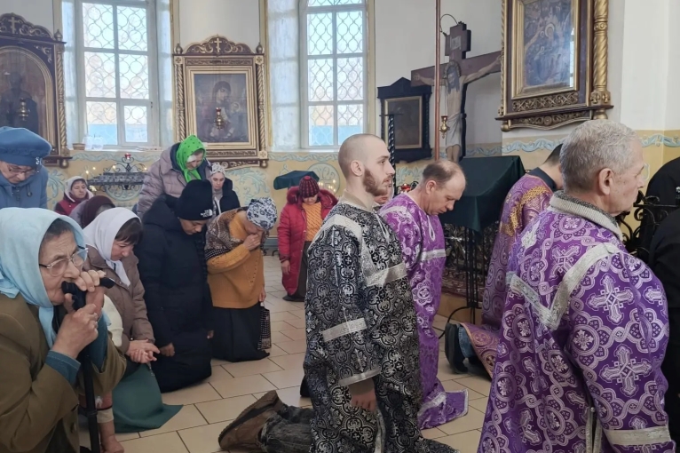 Затем были прочитаны молитвы на Великий пост. Батюшки преклонили колени и испросили прощения у молящихся прихожан, а прихожане испросили прощения у батюшек.