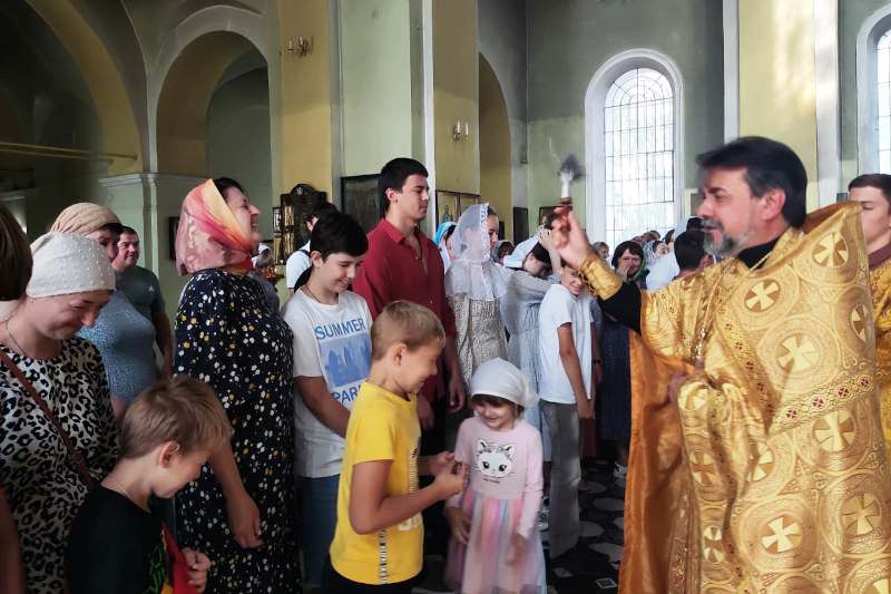 По завершении богослужения дети и присутствующие взрослые были окроплены святой водой. Затем священнослужитель обратился к собравшимся с напутственной проповедью, в которой пожелал всем помощи Божией в предстоящем учебном году.