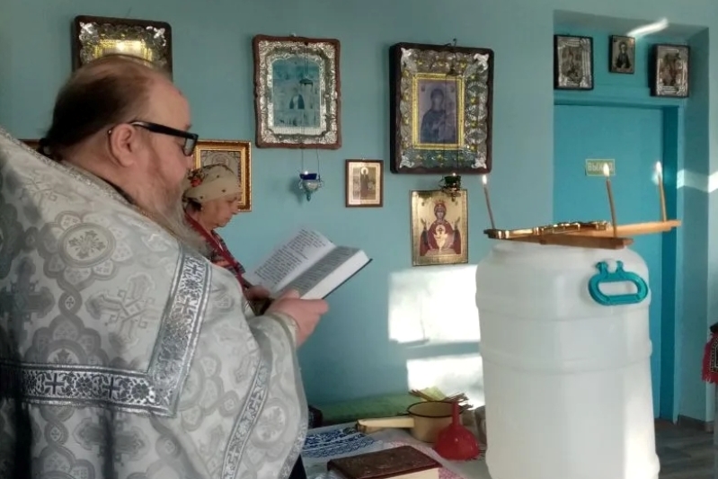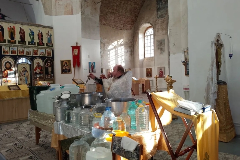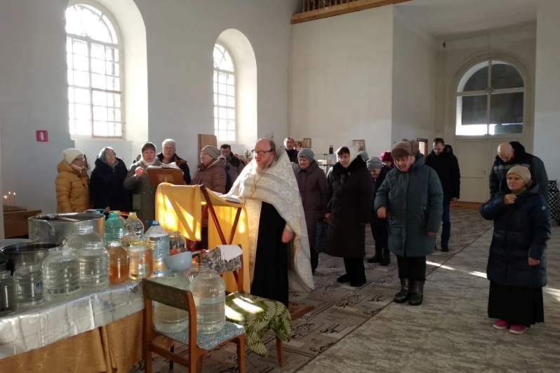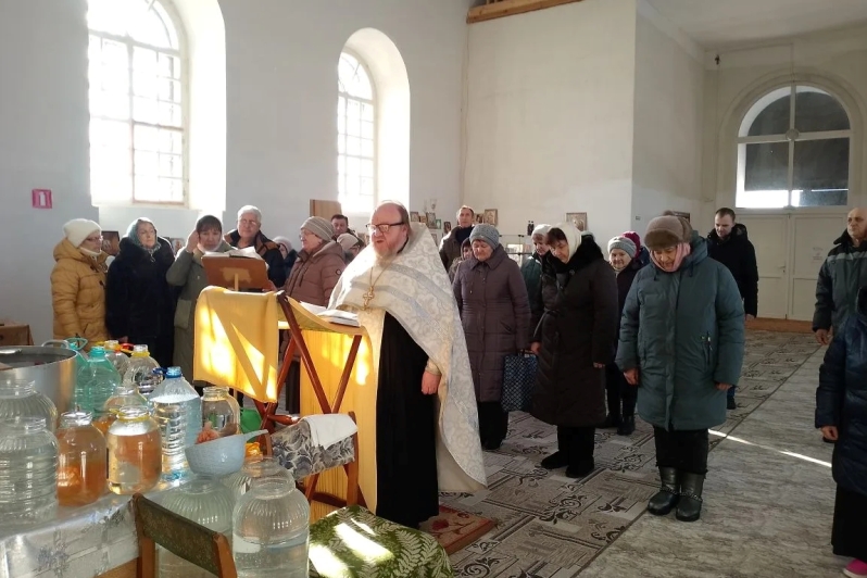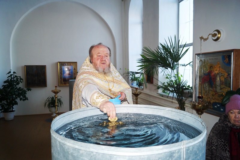 По завершении богослужений отец Сергий окроплял крещенской водой каждого прихожанина, подходящего к кресту.