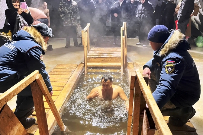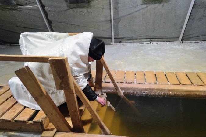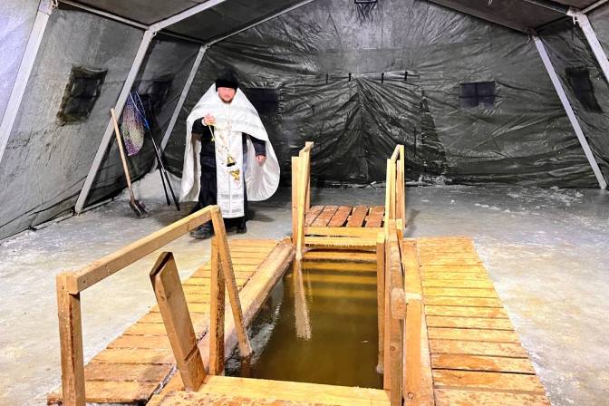 После чина Великого освящения к купели, которая была оборудована по всем правилам безопасности, потянулись желающие окунуться.
