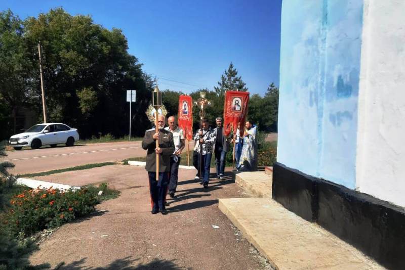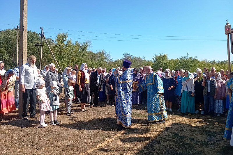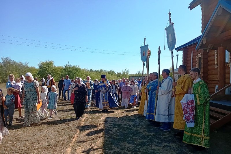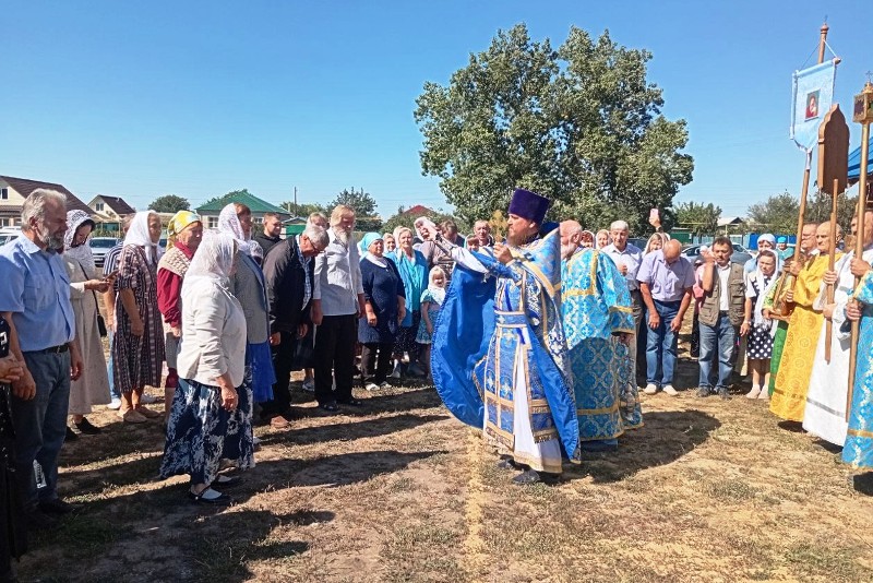 После Божественной литургии было совершено праздничное молебное пение, во время которого священники и молящиеся под колокольный звон прошли крестным ходом вокруг храма и были окроплены святой водой.