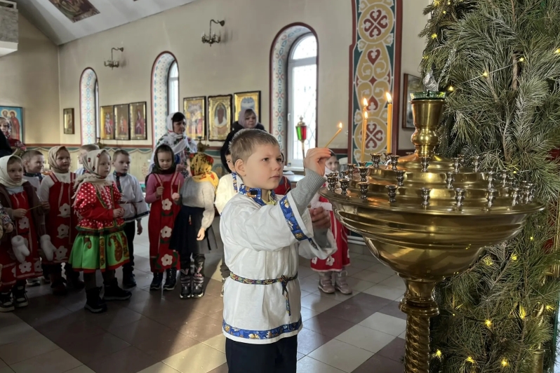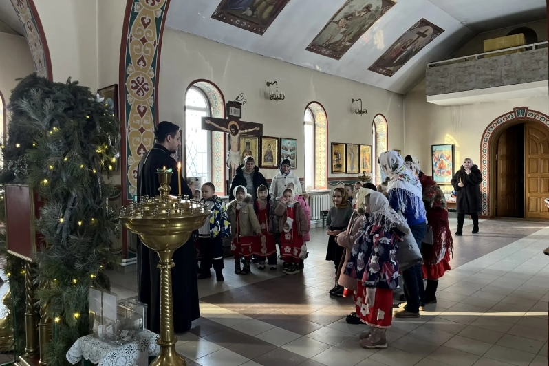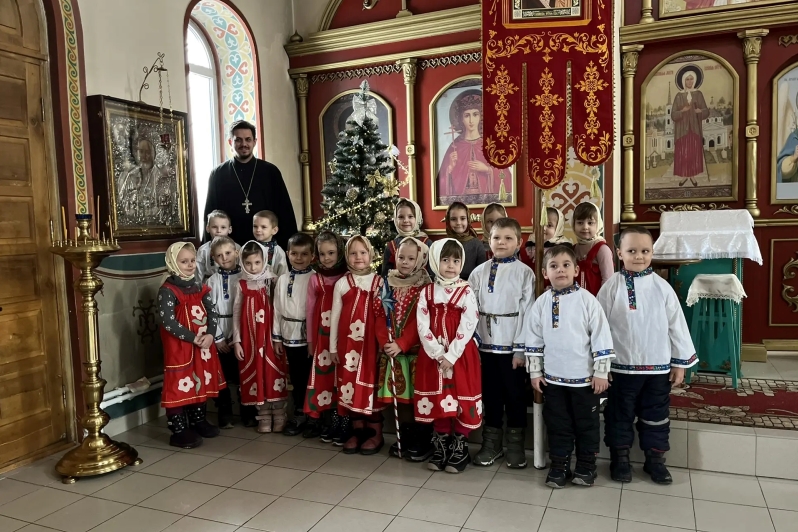 Детей, заведующую дошкольным учреждением Людмилу Николаевну Пинчук и воспитателей тепло встретил настоятель храма иерей Андрей Коровин. Дети выступили перед отцом Андреем с рождественскими колядками, стихотворениями и театрализованной сценкой, посвященной празднику Рождества Христова.