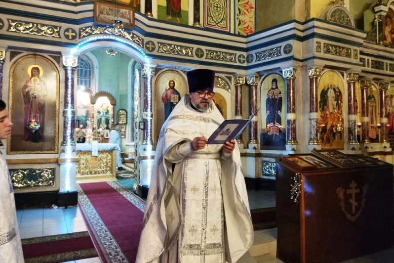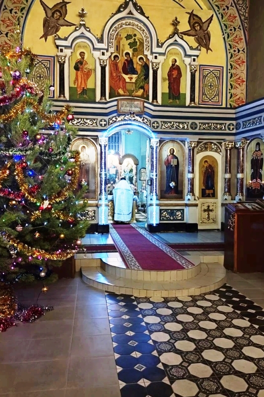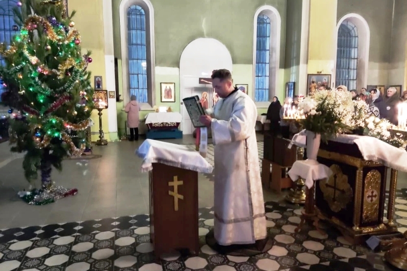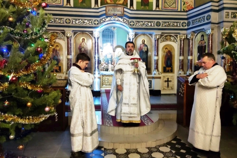 Перед причастием отец Михаил зачитал Рождественское послание Святейшего Патриарха Московского и всея Руси Кирилла.