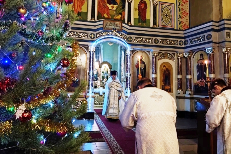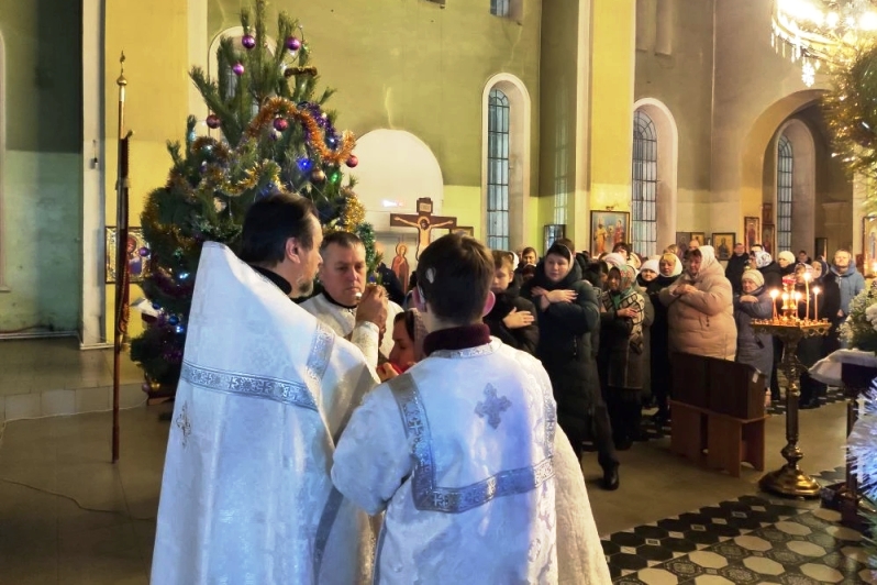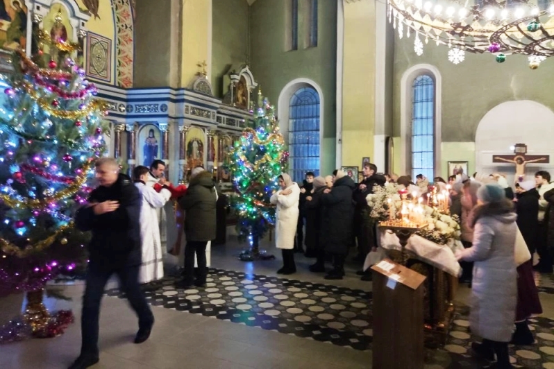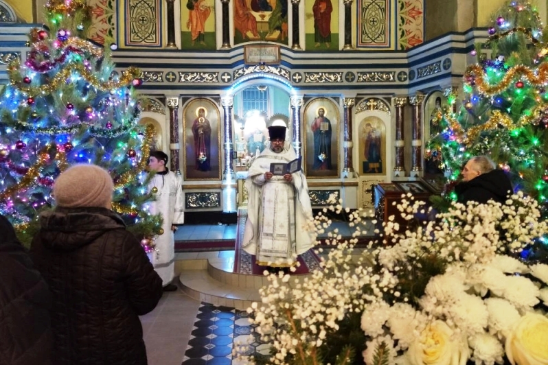 Прихожане собрались в храме, чтобы встретить Рождество Господа Бога и Спаса нашего Иисуса Христа.
