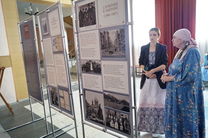 Далее с материалами выставки участников встречи познакомил Ковалев Сергей Владимирович. В своем рассказе он уделил особое внимание жизнеописанию и подвигу святителя Тихона, Патриарха Московского.