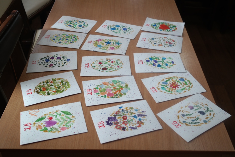 Преподаватель Кравченко Олеся Петровна поделилась с воспитанниками опытом изготовления Пасхальной открытки в технике цветочный орнамент.