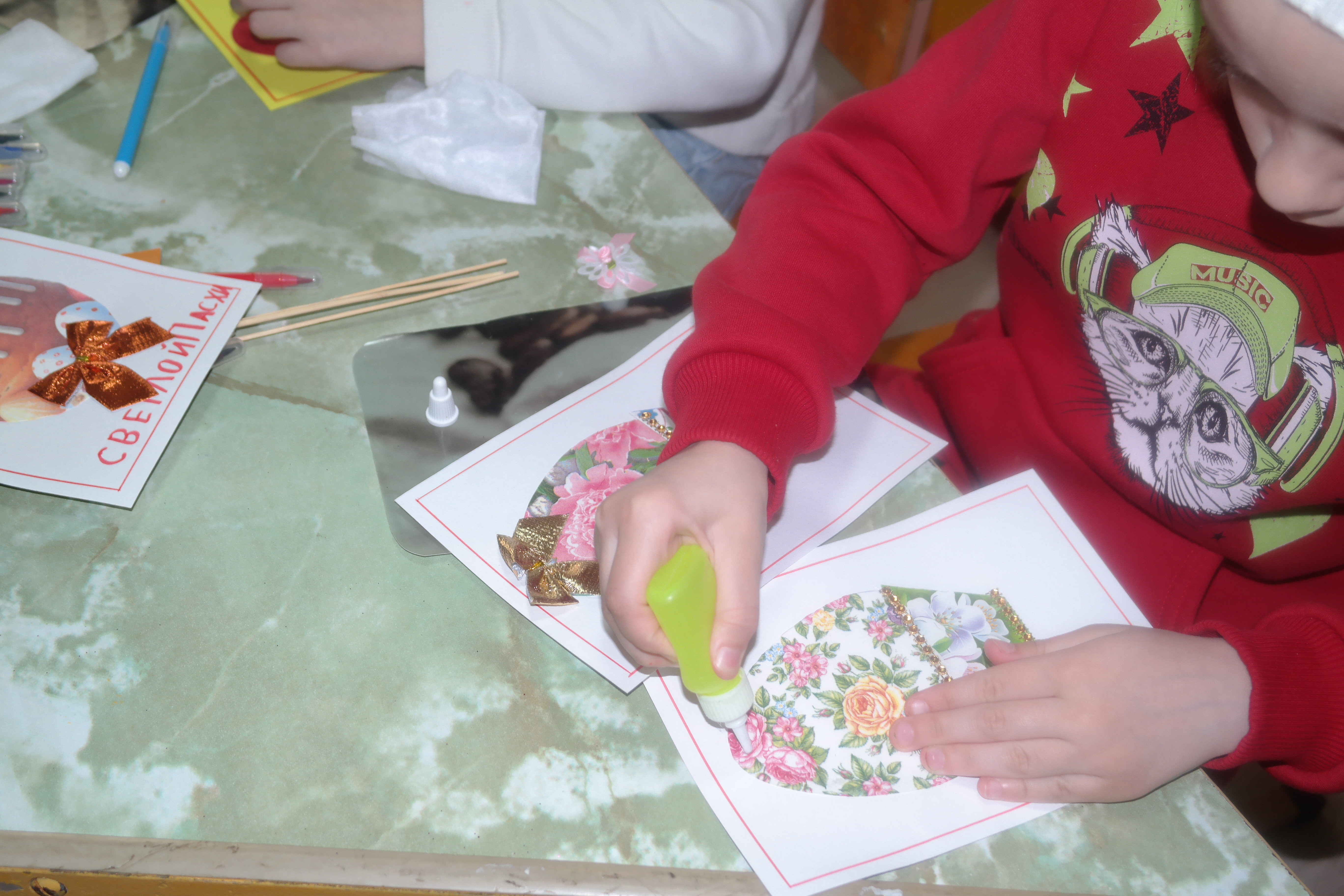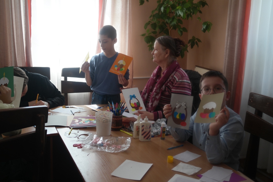 В начале мероприятия преподаватели рассказали детям об истории праздника Пасхи, познакомили с технологиями выполнения праздничной открытки. Ребятам были предложены несколько вариантов оформления открытки, и они с интересом взялись за работу.